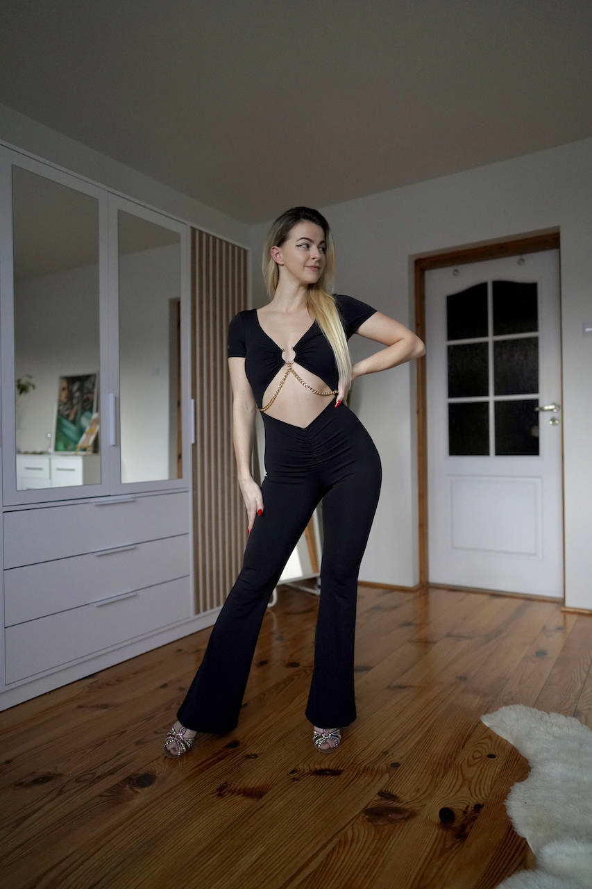 Absolutny trend tego sezonu. Elegancja i komfort w jednym ubraniu! Zniewalający hit sprzedażowy! Kombinezon, jumpsuit lub też strój jednoczęściowy – nieważne jak go nazywasz, ważne jak pięknie w nim będziesz wyglądać! Jest jak Twoja druga skóra, delikatny i rozciągliwy! Posiada wyjmowane wkładki abyś mogła decydować o tym jak wolisz go nosić. Stylowy dodatek w postaci złotego łańcuszka nadaje ekstrawagancji.